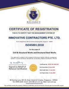 INNOVATIVE CONTRACTORS PTE LTD is a construction company incorporated in 2010. It is currently a BCA registered contractor under General Building and Civil Engineering works. We specialise in Civil engineering and building construction works. The combination of our experience and knowledge in the field of Civil Engineering, RC works, Steel Structure and the Underground Pipe Laying works, enable us to offer a complete package solution, besides providing skilled manpower for medium sized subcontracts in the field of Civil Works, Insulation, Painting, Fire protection, Grouting and other related fields.